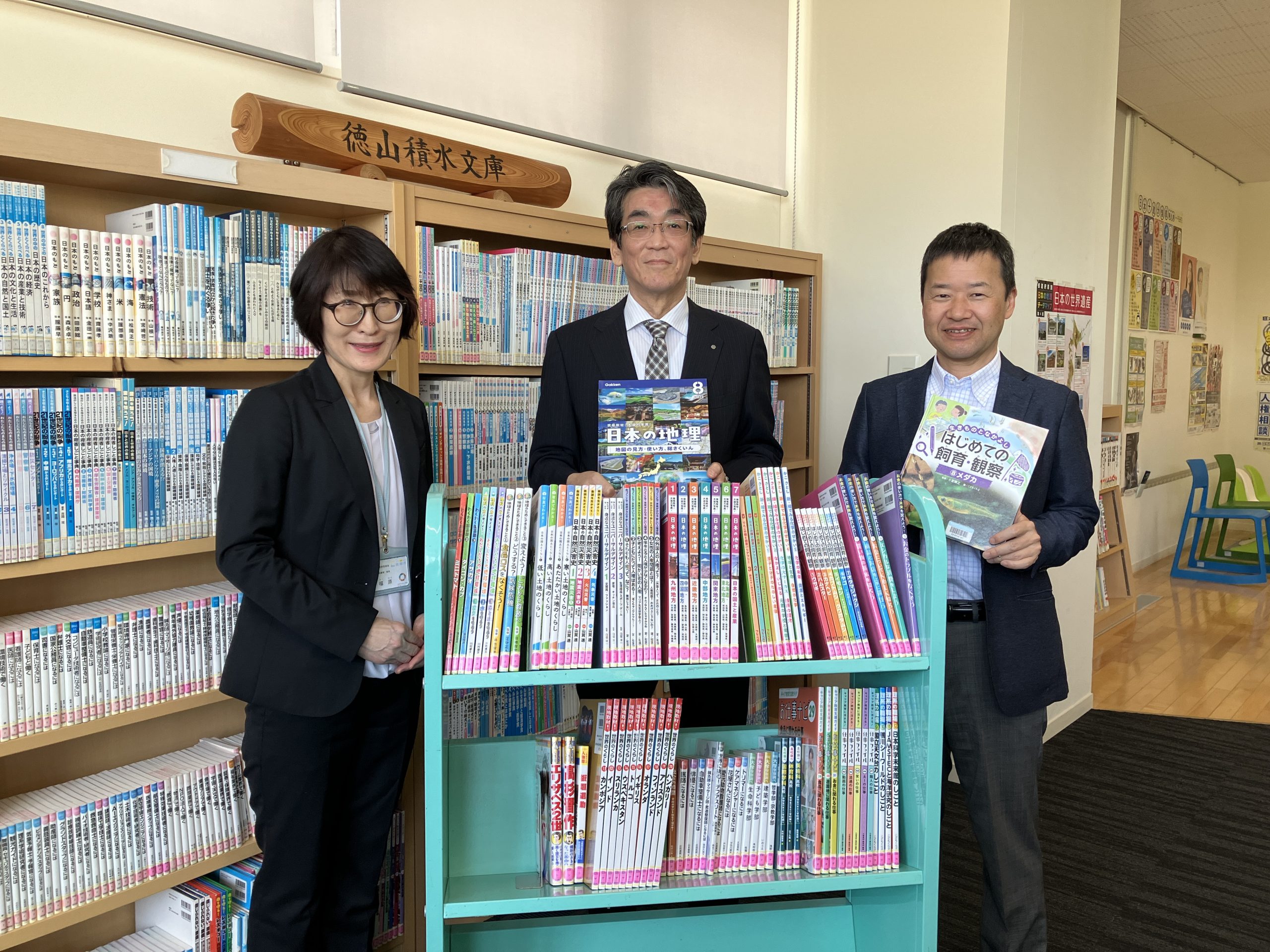 周南市立新南陽図書館の「徳山積水文庫」へ98冊寄贈いたしました。